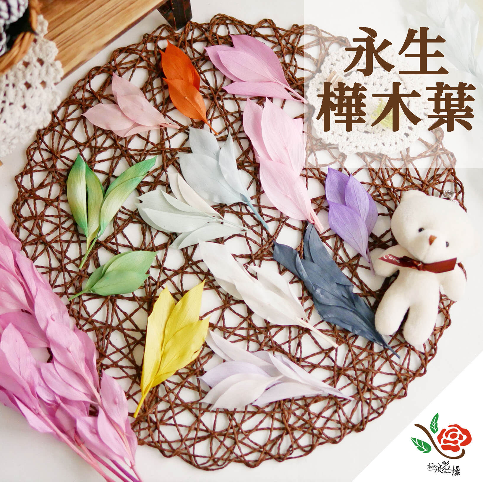 ● 永生葉材潮濕會出有色甘油 會染色其他花材 記得放置在乾燥處喔!