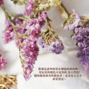 ● 乾燥星辰花會因季節適度改變蓬鬆度,有時由上往下觀賞時會看起來比較扁但不影響使用