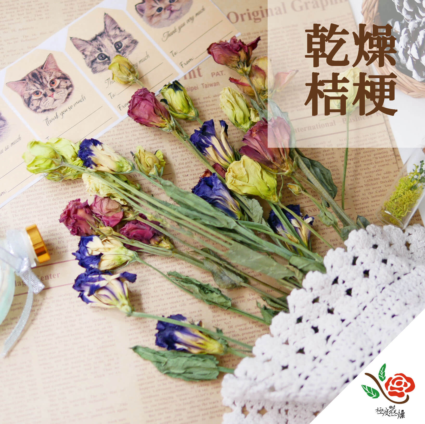 ● 乾燥後花朵及葉子會變得脆弱,包裝時會特別小心,但物流仍可能產生花損,請見諒!
