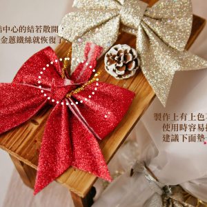 ● 固定蝴蝶結中心的結若散開,在上面卷緊金蔥鐵絲就恢復了~