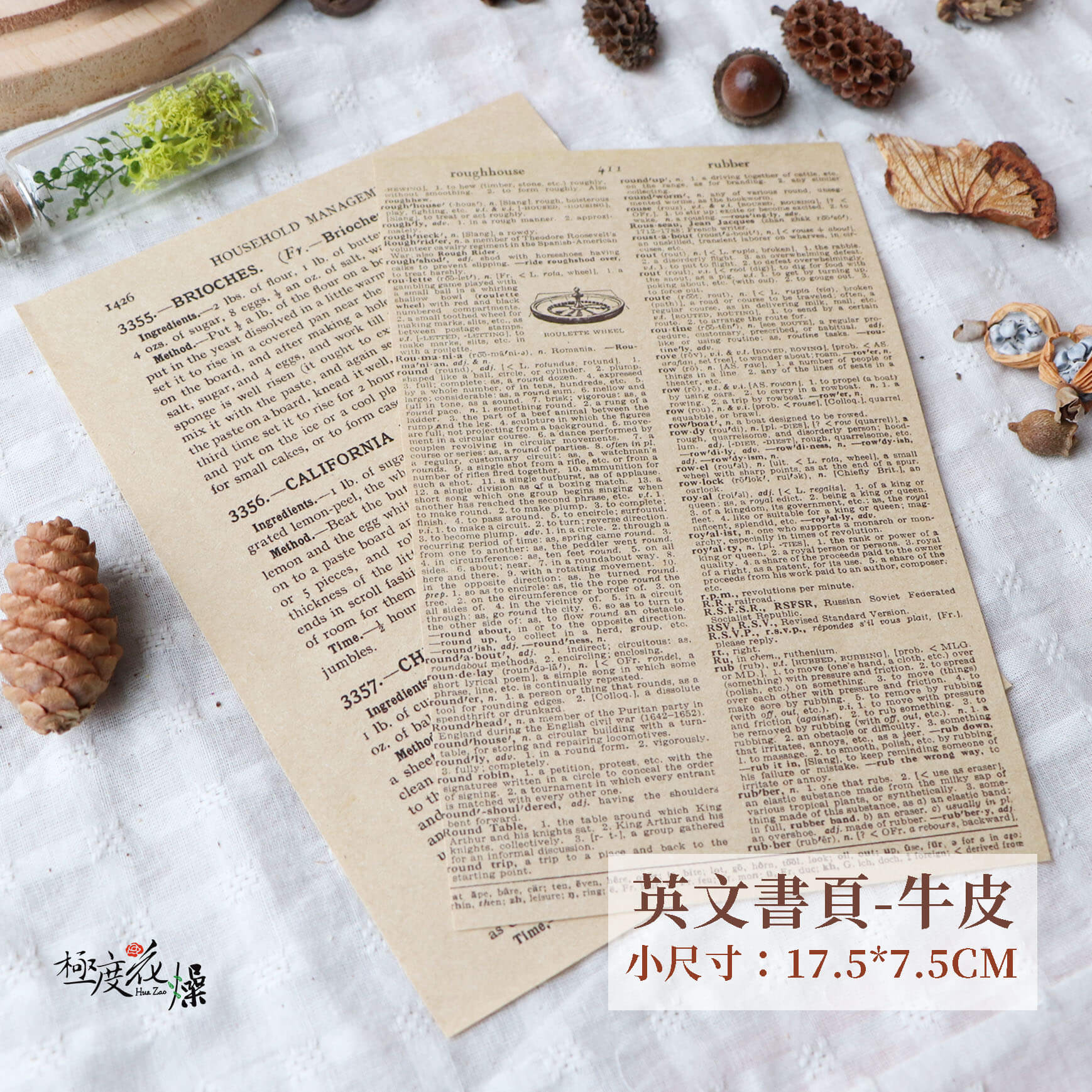 英文書頁包裝紙:大張長17.5*12.5CM / 小張長17.5*10.5CM(大+小約57張)