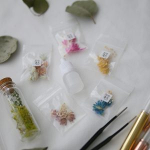 浮游花是以植物標本為原點,讓花朵彷彿在水中浮游,並可維持花朵顏色一段時間