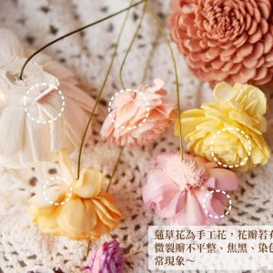 ● 蓪草木片因為較軟、較脆弱的緣故,最外圈的花瓣可能在運送過程中會有些微斷裂的問題,但不會影響花朵整體外觀,且因手工製作,每朵大小可能稍有差異